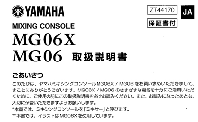 コンパクトミキサーYAMAHA MG06Xレンタルに際してのご注意
